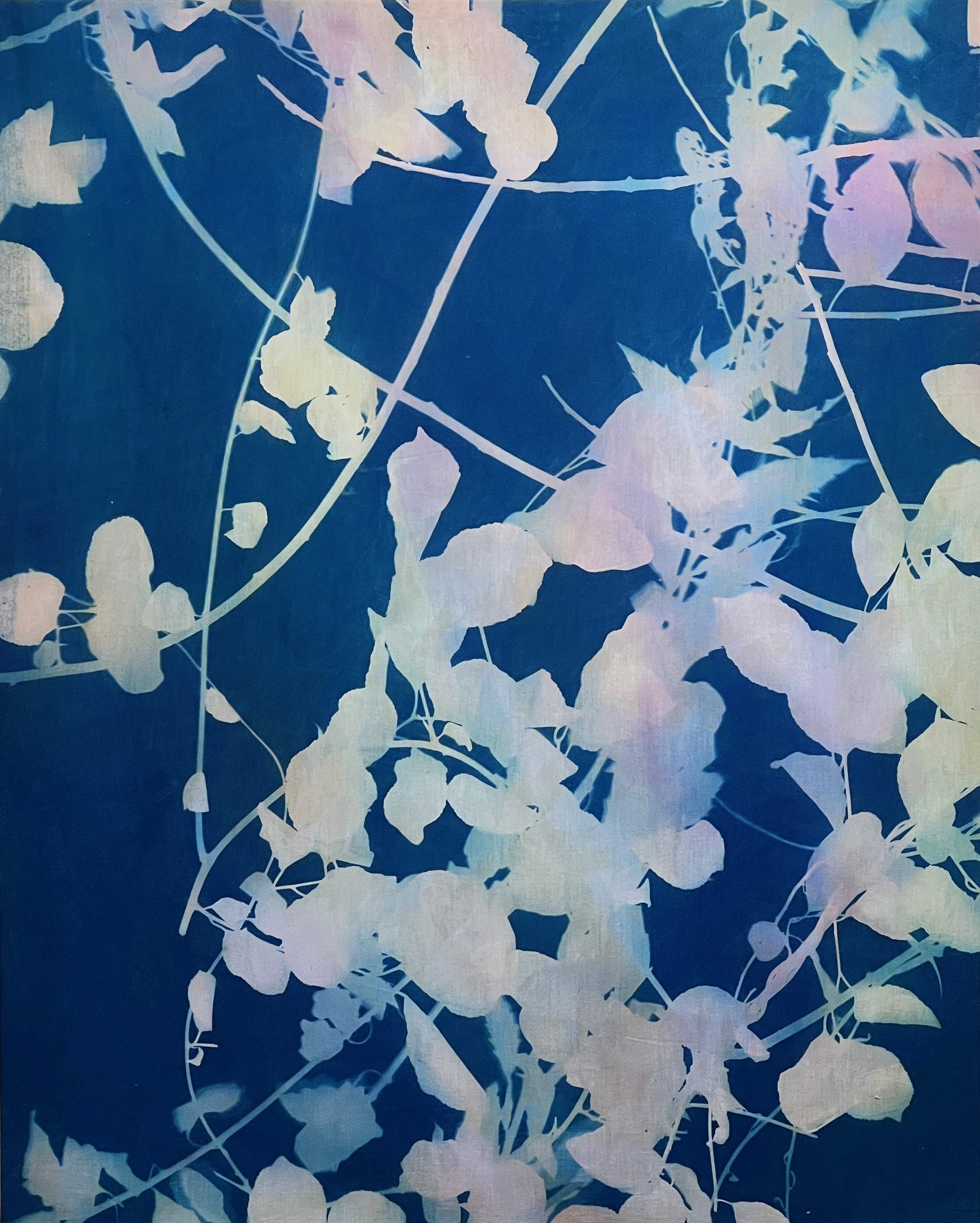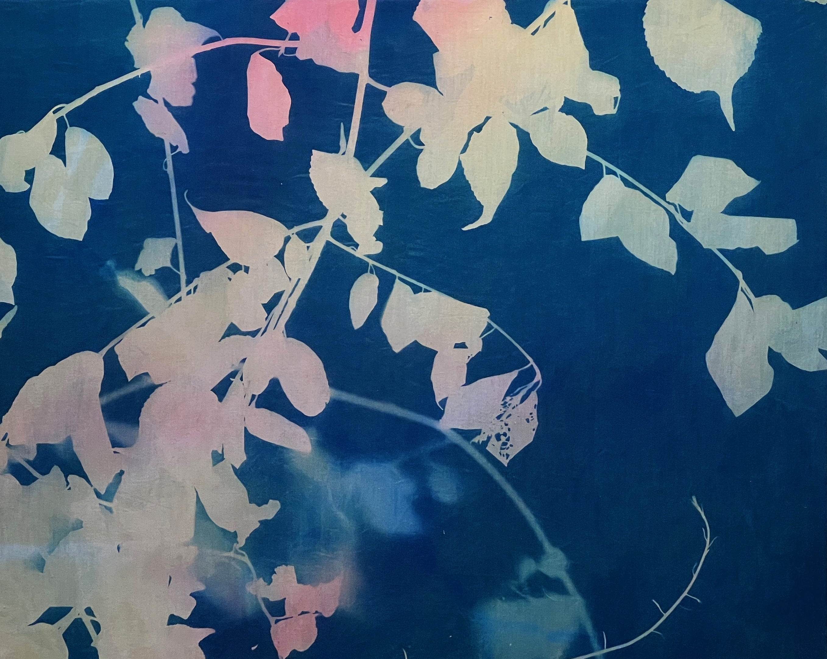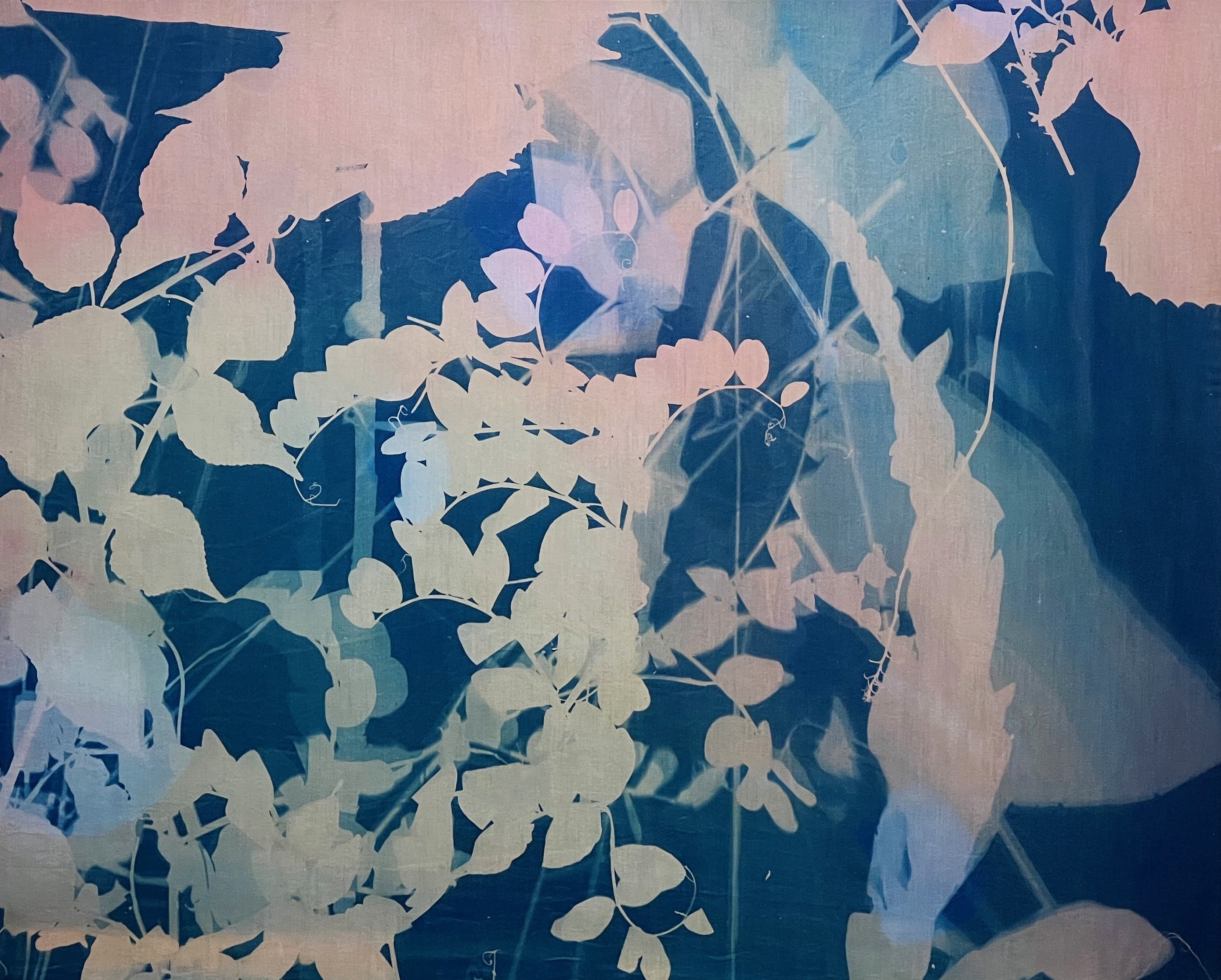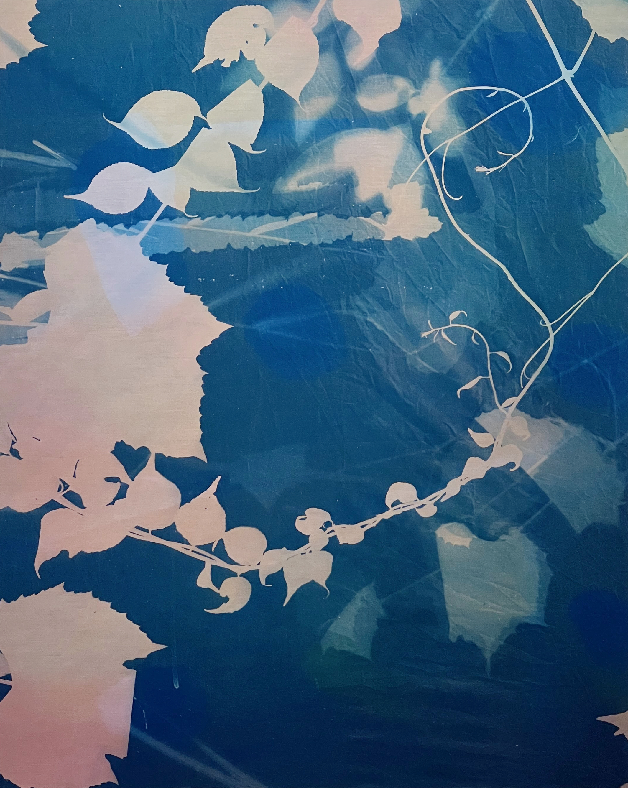 Cyanotype on Fabric White Artist Made Frame 20×32 2023 1/1